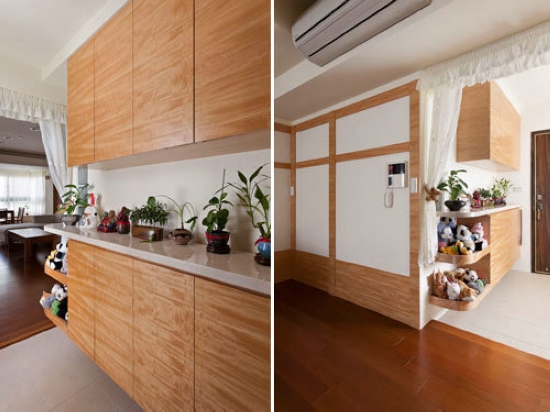 2012-8-7從日本到臺(tái)灣定居的男主人,期望在異鄉(xiāng)也能感受到溫馨的家鄉(xiāng)味,因此屋內(nèi)要能呈現(xiàn)出濃厚日本風(fēng)情;而重要的...特別為平時(shí)一起在主臥室睡覺(jué)的小太郎,設(shè)計(jì)化妝臺(tái)下的床鋪,日夜間都能有良好的互動(dòng)。電視墻上方改為夾紗玻璃,開(kāi)啟時(shí)視線通透,也能加強(qiáng)通風(fēng)與空氣循環(huán)。加強(qiáng)機(jī)能不佳的和室規(guī)劃,地板架高40公分,藏有儲(chǔ)物機(jī)能。[繼續(xù)閱讀] -