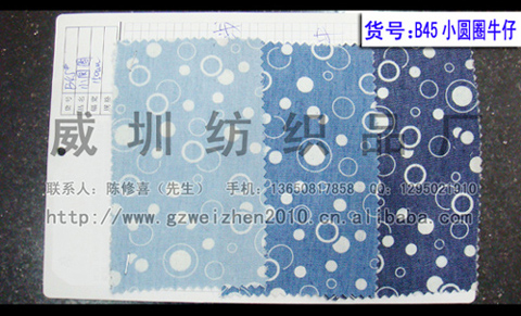 長期供應 小圓圈牛仔面料 洗水牛仔面料 工藝印花洗