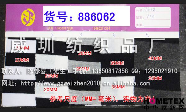 織物組織:色織 幅寬:170 密度:240T 貨號:886062 具體用途:襯衫、休閑服、褲裝、內(nèi)衣、睡衣、時裝 成分及含量:滌棉 主要用途:服裝用布 紗支:32 ============================================================= 以上產(chǎn)品全部現(xiàn)貨供應,可隨時提供樣布卡和現(xiàn)貨,隨時發(fā)貨。所有產(chǎn)品全部是廠家直銷價,我們承諾:以超低利潤營銷,我們只求銷售量。為保證您的利益,我司建議您在采購前先確認我們的品質(zhì)樣與顏色樣后再拿大貨,期待與您的真誠合作。因產(chǎn)品種類較多,具體參考未盡詳盡,如有需要,請您與我們聯(lián)系。 瑞豐紡織(中大旗艦店)坐落于國內(nèi)最大的紡織面料產(chǎn)業(yè)中心—廣州中大,是一家專業(yè)銷售面料的廠家直銷商。主要經(jīng)營產(chǎn)品有:全棉凈色、仿記憶絲面料、全棉(TC)色織等,面料品種花達上千余種,所有產(chǎn)品全部現(xiàn)貨經(jīng)營。 我們面料的品質(zhì)來源于:1、采用國內(nèi)外優(yōu)質(zhì)的原材料;2、使用精良的生產(chǎn)工藝和設備;3、完善的生產(chǎn)質(zhì)量管理體系。我們具有開發(fā)和創(chuàng)新品種的強烈意識和優(yōu)越條件,并根據(jù)客戶需求與市場變化時時推出潮流面料。憑著多年的專業(yè)行業(yè)經(jīng)驗,根據(jù)客戶需求,不論客戶在全國任何地方,只要提供小樣,就可在一兩天時間內(nèi)輕松獲得所需面料的信息。 批發(fā)說明供應商支持混批 。 ============================================================= 有意請加QQ:1295021910或電話聯(lián)系。 公司名稱:威圳紡織品廠 聯(lián)系人:陳修喜先生 手機:13650817858 網(wǎng)址:http://www.gzweizhen2010.cn.alibaba.com =============================================================