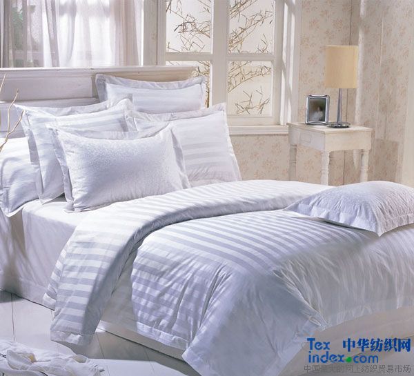 石家莊華紡布業有限公司我公司是一家生產及銷售床上用品的新型家紡有限公司,現有員工300多人,年銷售額達5000萬人民幣。擁有先進的生產設備及進出口權,現代化的管理模式,雄厚的資金實力,優越的地理環境,本著“誠實可信,物美價廉”的經營理念,產品已遠銷于歐美、澳大利亞、英國、南非、新西蘭、新加坡、香港、臺灣、等地區并深受廣大的國內外客戶的青睞。 我公司提供床上用品的純棉或滌棉中高檔坯布及各種漂白、染色、印花等成品,成品幅寬為34”-112”包括大提花布,小提花布(1cm緞條布、3cm緞條布及變頻條布、方格布、回字格),斜紋布,平布,貢緞等。面料采用高配棉以及埃及棉面料。 我公司的產品以外銷為主,主要產品有兩大類;酒店用紡織品和家庭用紡織品。 床上件套(被罩、床單、枕套、抱枕、床笠、床裙、枕心),繡花被套、羽絨被,絎縫被系列,窗簾,沙發套,圍裙,臺布、口布、巾類(毛巾 浴巾 地巾手巾)等系列產品。