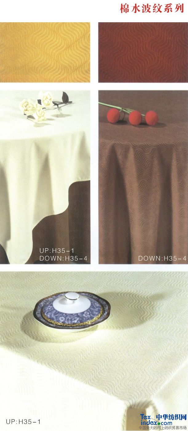 主要銷售客房;平紋 中,高檔【多種顏色40支-60支緞條】床單,被罩,枕套,枕芯,被子,墊被,床裙,床罩,床尾墊,浴簾以及毛巾系列。                                                    餐飲系列;多種顏色中高檔 【純棉  方格 化纖 花色圖案】臺布 口布 臺墊 臺裙 臺呢 椅套 印花臺布具有不褪色、耐洗、耐磨、色澤艷麗、平整挺括且使用壽命長的特點,印花臺布規格2.8m,表面繡有花朵圖案作裝飾,造型典雅、大氣,精美時尚,使整體更加美觀,深受廣大消費者的喜愛。白色印花臺布采用優質化纖材料制作而成,款式新穎、物美價廉,是酒店、賓館、家庭等場所的必備用品之一。