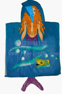 長期供應 割絨純棉活性印花兒童披風浴巾毛巾