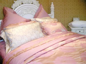 碎花、田園風格都屬于淑女系列。如果你的臥室裝潢屬于歐式的宮廷格調,那么一款名為“愷撒大帝”的半棉半蠶絲八件套就相當夠氣派了。另外,雅蘭床上用品的專業人士還傳授了如何洗滌蠶絲床品的技巧。蠶絲制品的光澤與順滑常在清洗過后變得黯然失色。但只要在清洗時避免用有漂白功效的洗滌用品,改用質量好的二合一洗發水,清洗完以后的蠶絲制品可依舊保持光澤。另外,最好不要選擇純蠶絲的床品,因為蠶絲矜貴,容易變皺,所以最好選擇半棉半蠶絲的床品,更易于打理。